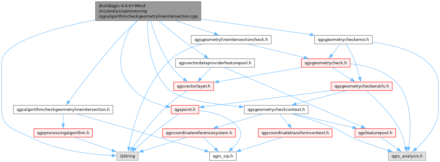 #include "qgsalgorithmcheckgeometrylineintersection.h"#include "qgsgeometrycheckcontext.h"#include "qgsgeometrycheckerror.h"#include "qgsgeometrylineintersectioncheck.h"#include "qgspoint.h"#include "qgsvectordataproviderfeaturepool.h"#include "qgsvectorlayer.h"#include <QString>