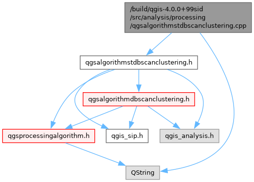 Include dependency graph for qgsalgorithmstdbscanclustering.cpp: