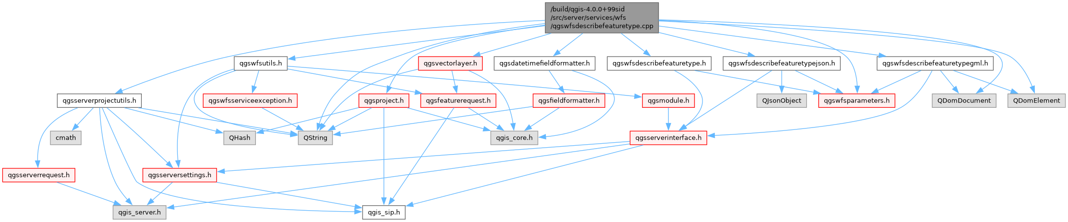 | void | QgsWfs::writeDescribeFeatureType (QgsServerInterface *serverIface, const QgsProject *project, const QString &version, const QgsServerRequest &request, QgsServerResponse &response) |