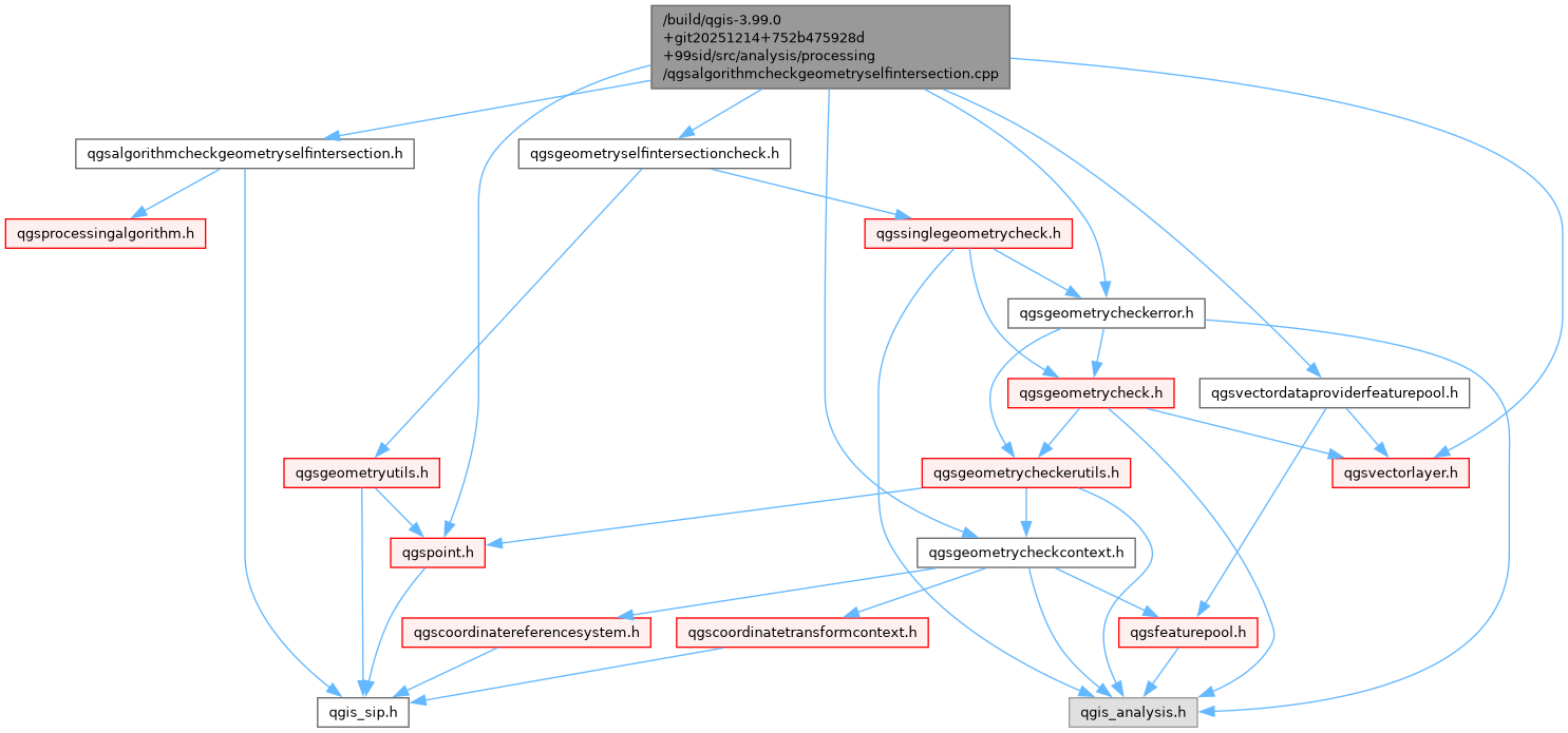 #include "qgsalgorithmcheckgeometryselfintersection.h"#include "qgsgeometrycheckcontext.h"#include "qgsgeometrycheckerror.h"#include "qgsgeometryselfintersectioncheck.h"#include "qgspoint.h"#include "qgsvectordataproviderfeaturepool.h"#include "qgsvectorlayer.h"