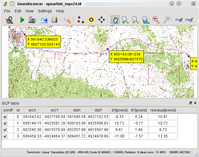 Продолжить ввод точек. Необходимо, как минимум, 4 точки, и чем больше координат будет введено, тем точнее будет результат. В диалоговом окне модуля есть дополнительные инструменты для увеличения/уменьшения или прокрутки рабочего окна для того, чтобы определить соответствующий набор контрольных точек.