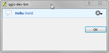 self.bar.pushMessage("Hello", "World", level=QgsMessageBar.INFO)