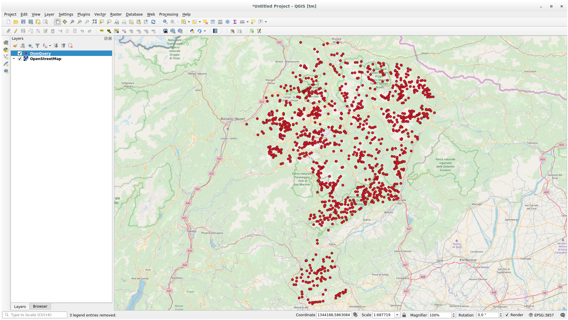 For example: we want to download the mountain peaks that belongs into a specific mountain area known as Dolomites.