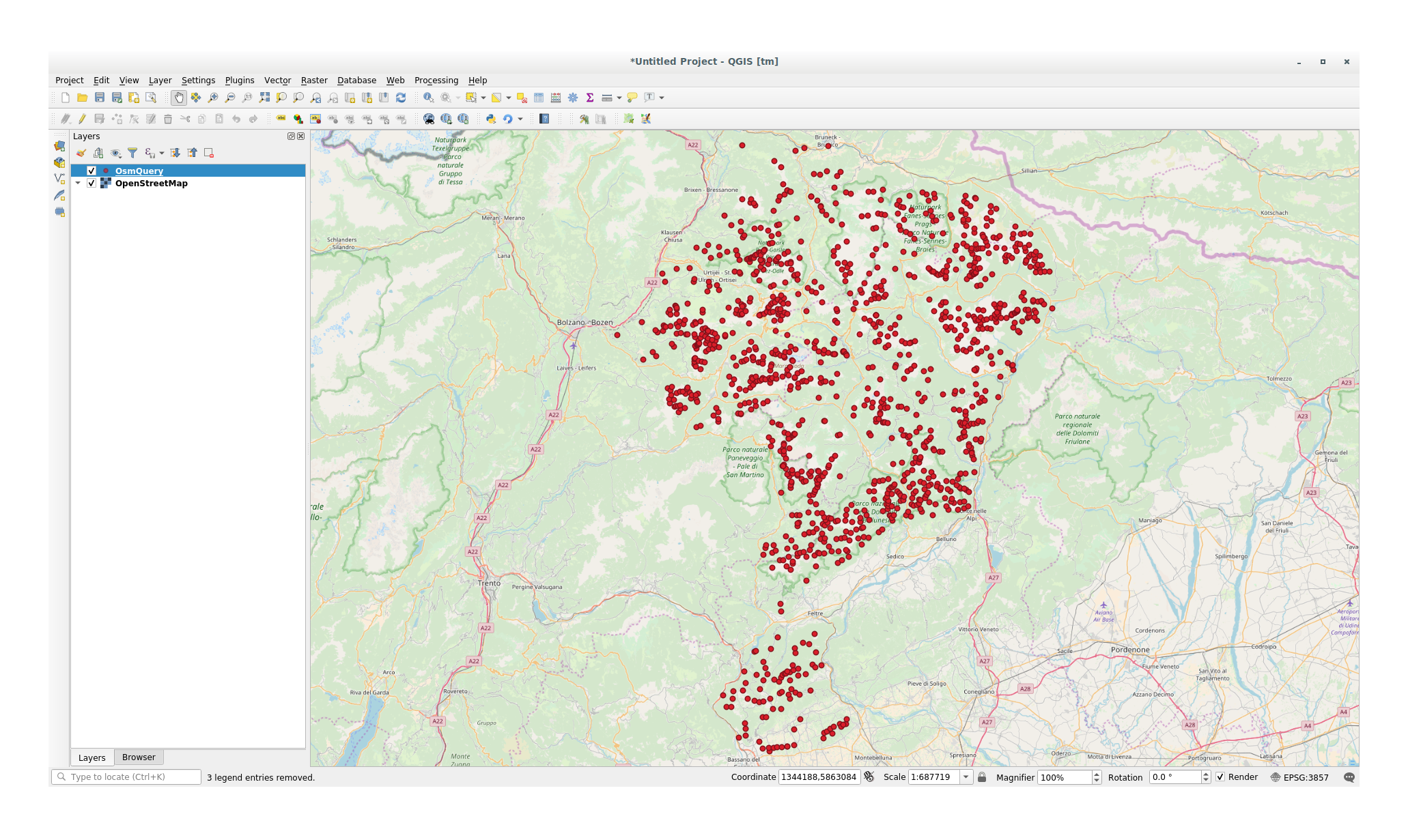 For example: we want to download the mountain peaks that belongs into a specific mountain area known as Dolomites.